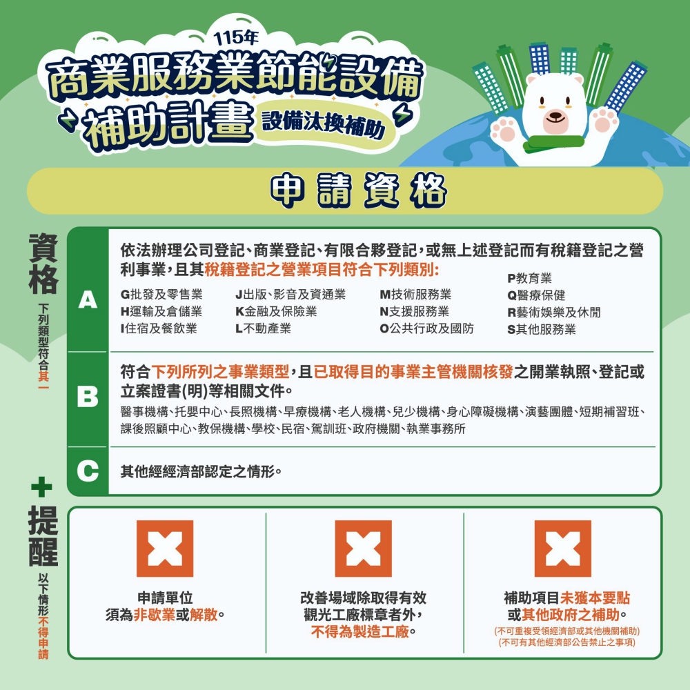 經濟部115年商業服務業節能設備汰換補助自115年2月10日起受理申請 協助業者省電及優化營業環境