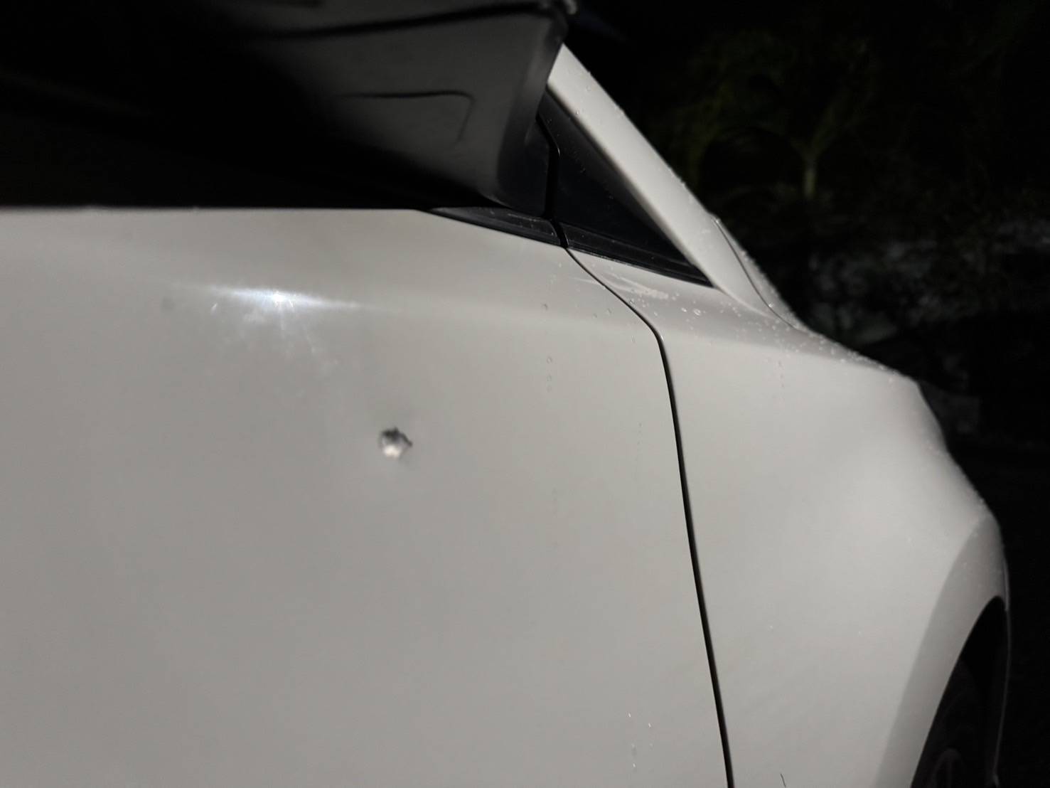 路上起糾紛還不算 對方竟追到南灣路拿BB槍掃射車門.(圖/警方提供)