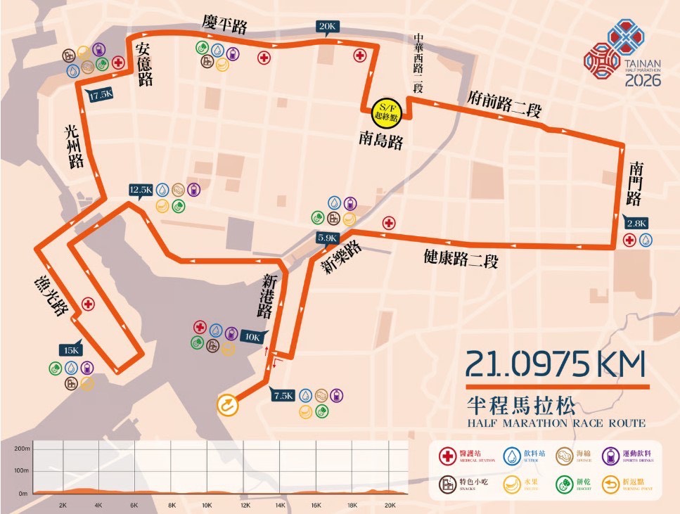 2026古都馬拉松今年邁入第20週年,報名人數已突破2萬5千人次,並吸引眾多國際跑者共襄盛舉,是本市年度重點運動盛事。本次賽事結合半程馬拉松、10公里路跑及健康5公里路跑組別,展現臺南兼具運動、文化與國際交流的特色魅力。