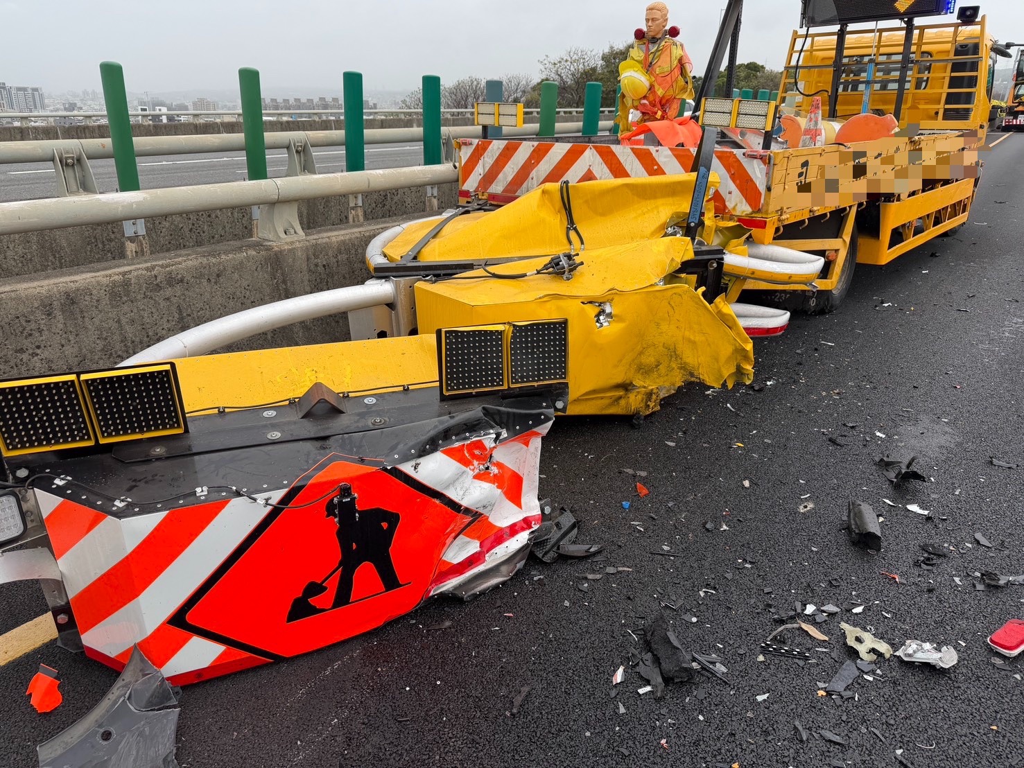 國道警察第七大隊表示,今日13時26分,29歲陳姓男子駕車行經國道3號北向183.5公里龍井路段,疑分心駕駛追撞內側車道路肩清掃作業緩撞車。