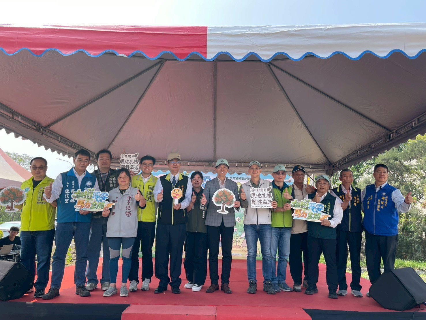 臺南市政府今(21)日攜手林業及自然保育署嘉義分署,於柳營科技工業區公園3綠地共同舉辦「加樹淨零 馬力全開」植樹活動。活動由柳營區重溪國小太鼓隊帶來氣勢磅礴的開場表演,隨後由私立貝特幼兒園展現活力舞蹈,現場氣氛熱烈。現場由副市長葉澤山與林業保育署嘉義分署副分署長魏郁軒帶領農業局主秘吳名彬、環保局長許仁澤、警察局新營分局分局長陳俊凱,偕同立委、議員等特助秘書、柳營區長劉發仲、榮剛材料科技公司處長陳英任、頂正科技公司董事長岡部太一、遠東百貨副店長張家豪等貴賓及市民朋友們,共同種下象徵永續的原生樹苗,展現臺南落實2050淨零排放的決心。