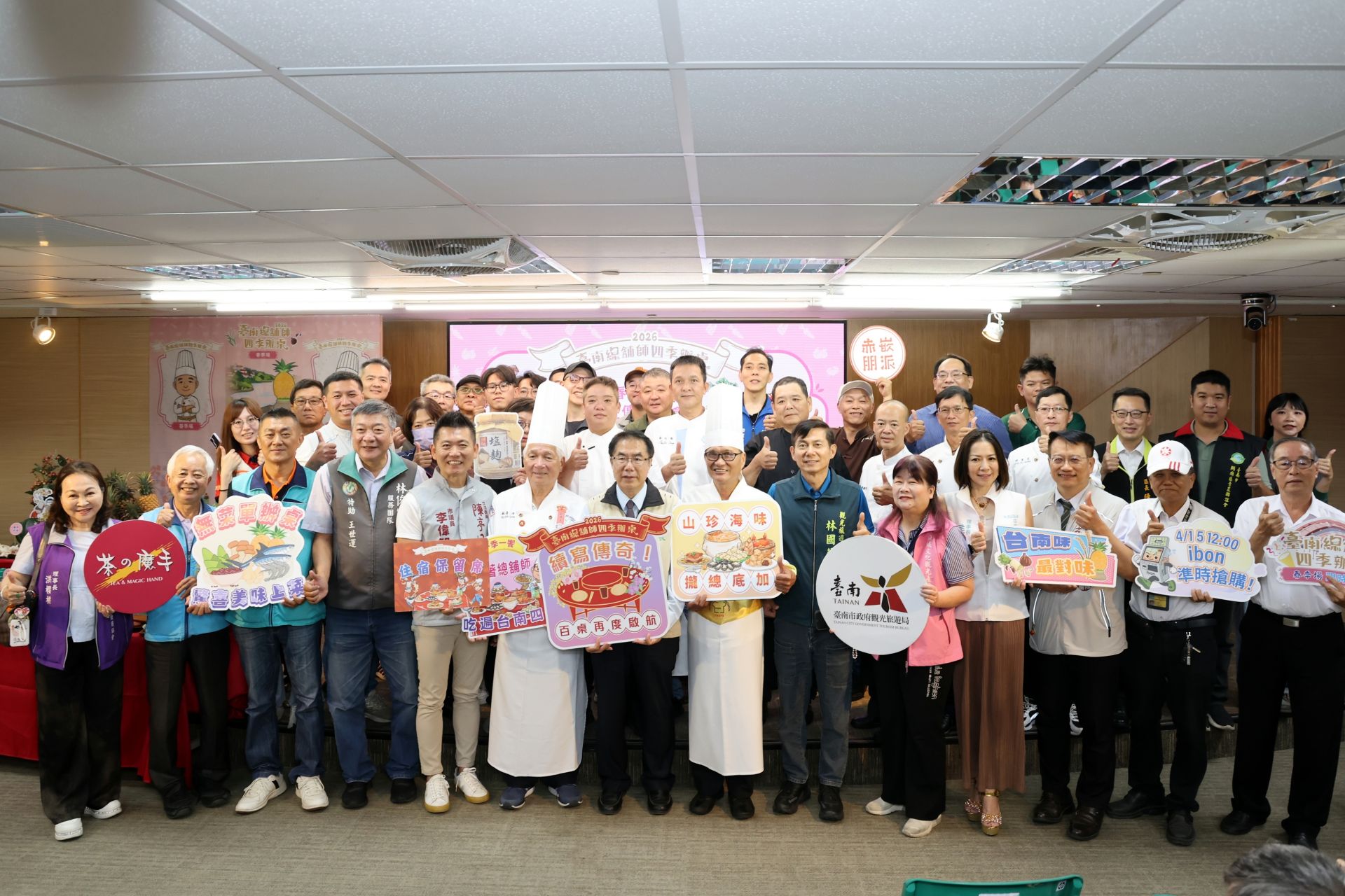(記者 李昱祺/台南報導)廣受好評的「2026台南總舖師四季辦桌」將再度登場,台南市政府(14)日於永華市政中心舉辦宣傳記者會,市長黃偉哲宣布首場「春季辦桌」將於5/2在關廟區大潭埤旺萊公園熱鬧開桌,並於明(4/15)日中午12時開放報名。今年以「四季主題 × 八大總舖師」為核心,春季場席開百桌,黃偉哲向全國饕客發出邀請,一同來體驗結合山、海、平原與丘陵食材的指標性地景饗宴。