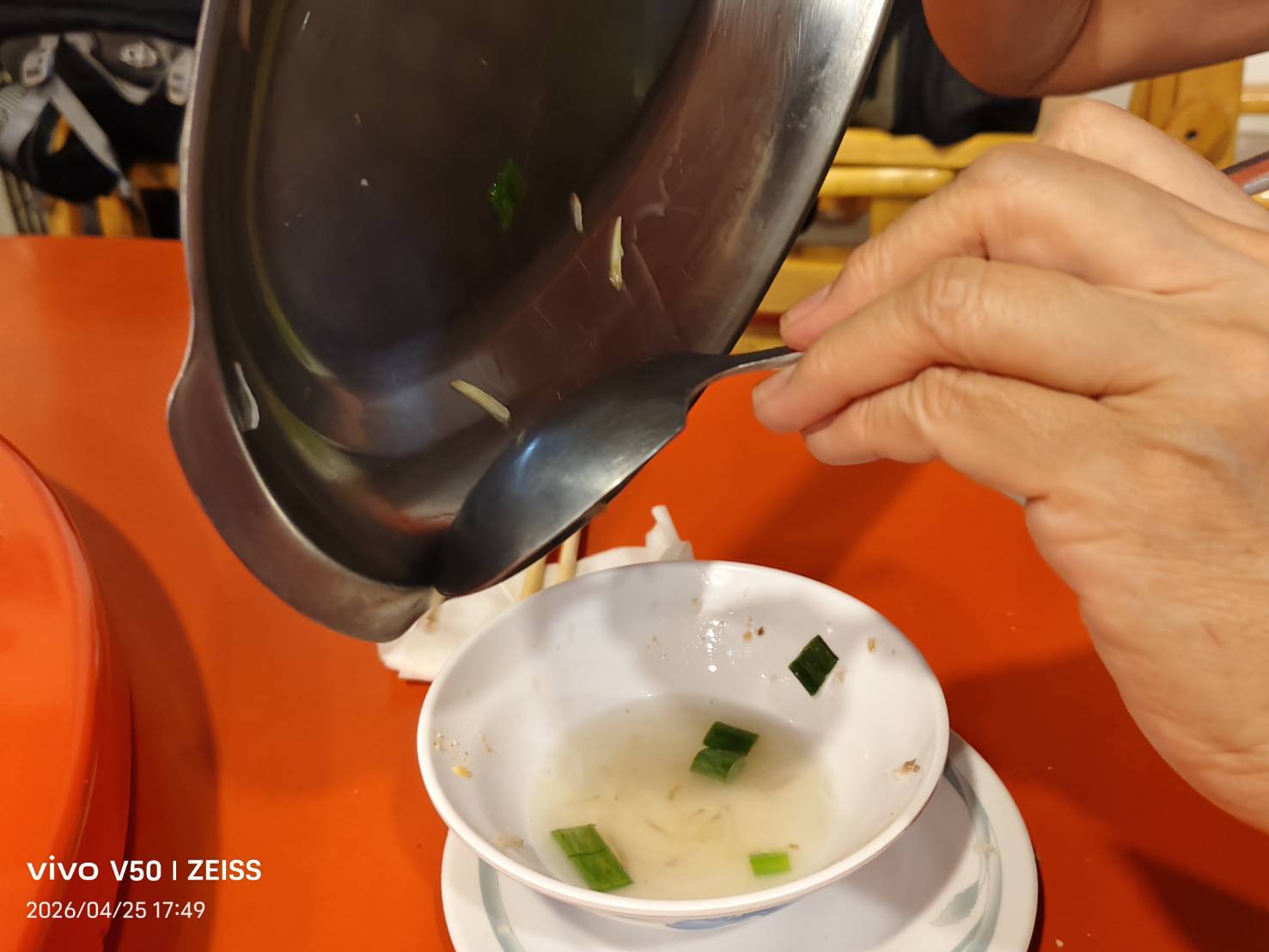 海瓜子湯汁剩下一點也被客人珍惜,喝掉。
