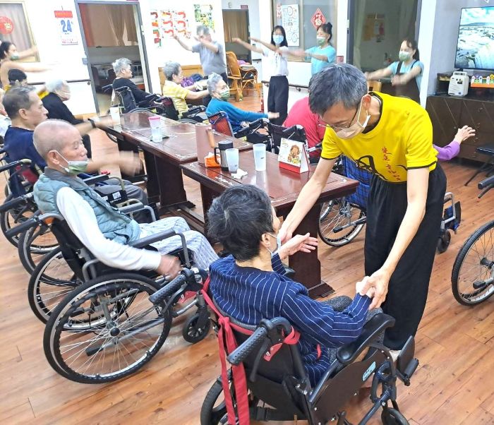▲梅門進入長照機構帶領長者練習平甩功。(圖/新北市政府社會局提供)